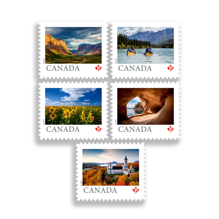 Five unique designs – 20 of each on a coil – featuring the incredible beauty of Canada’s natural and cultural landscapes.